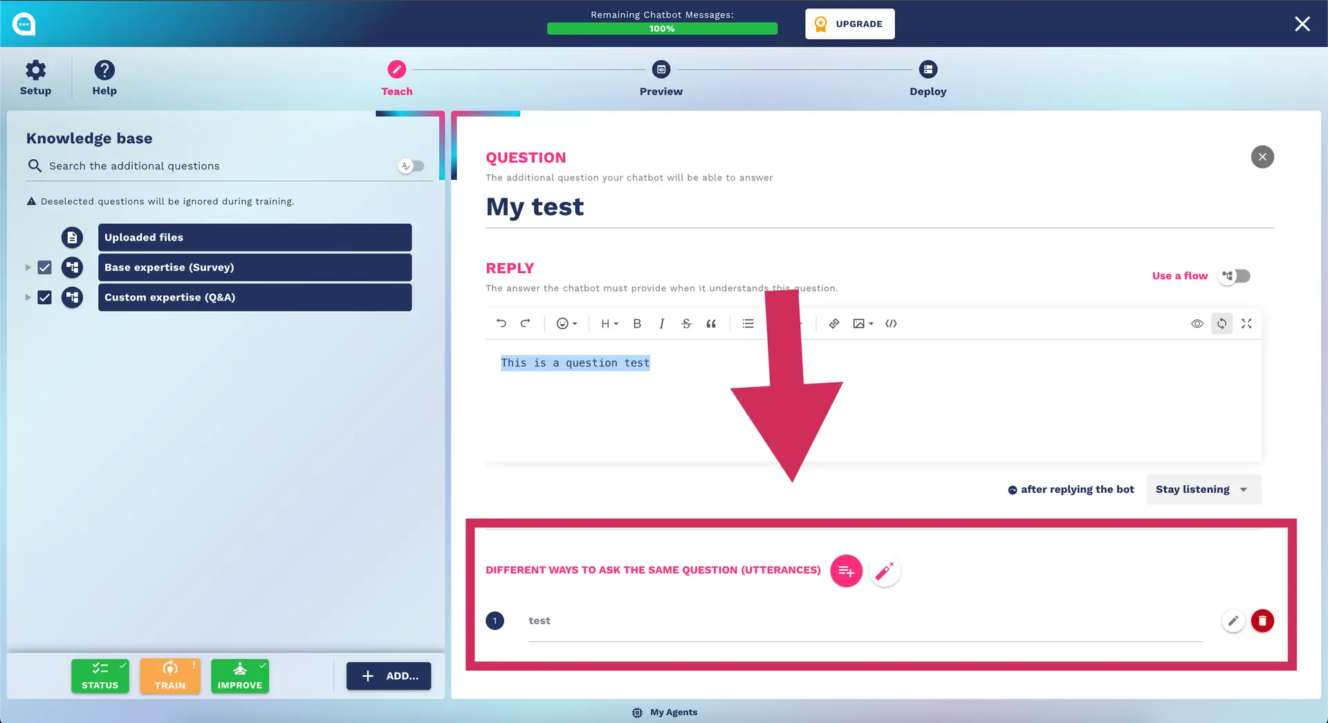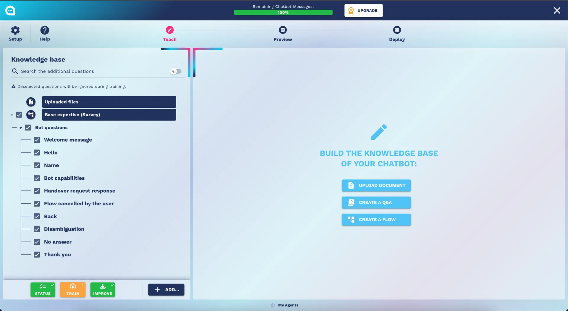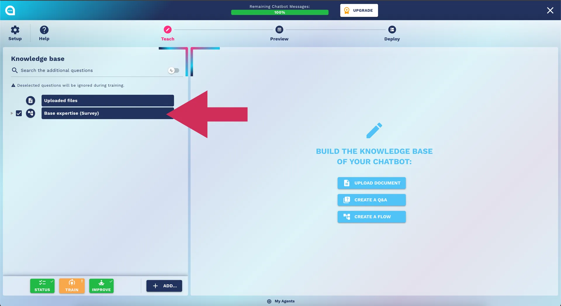 Unlock your chatbot's potential with our guide on the Teaching Step, including surveys, custom Q&A, and knowledge base management.