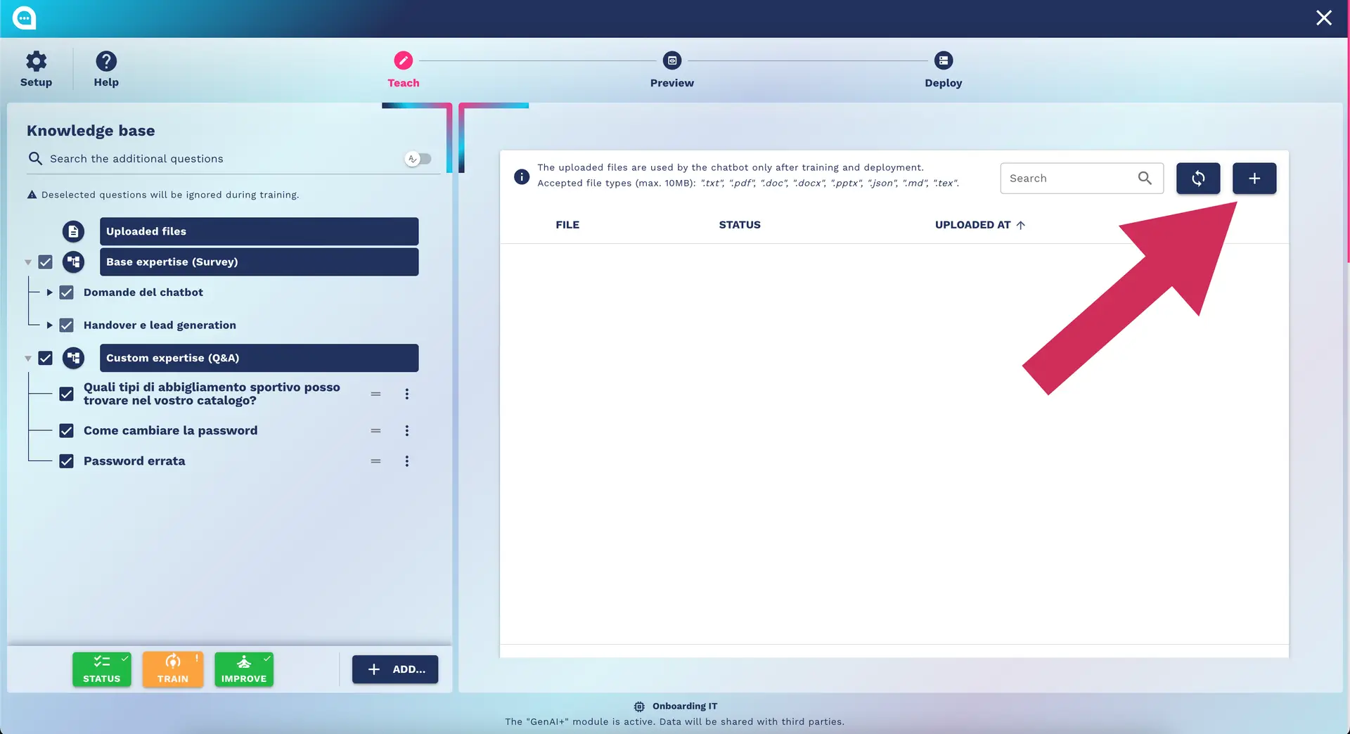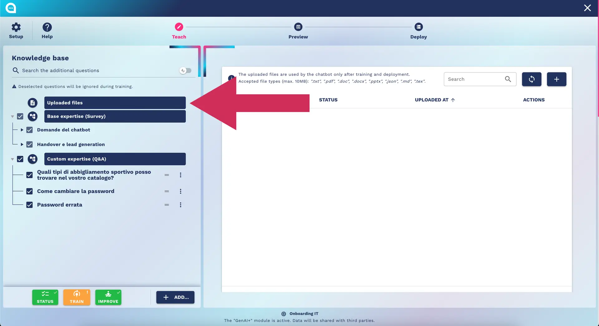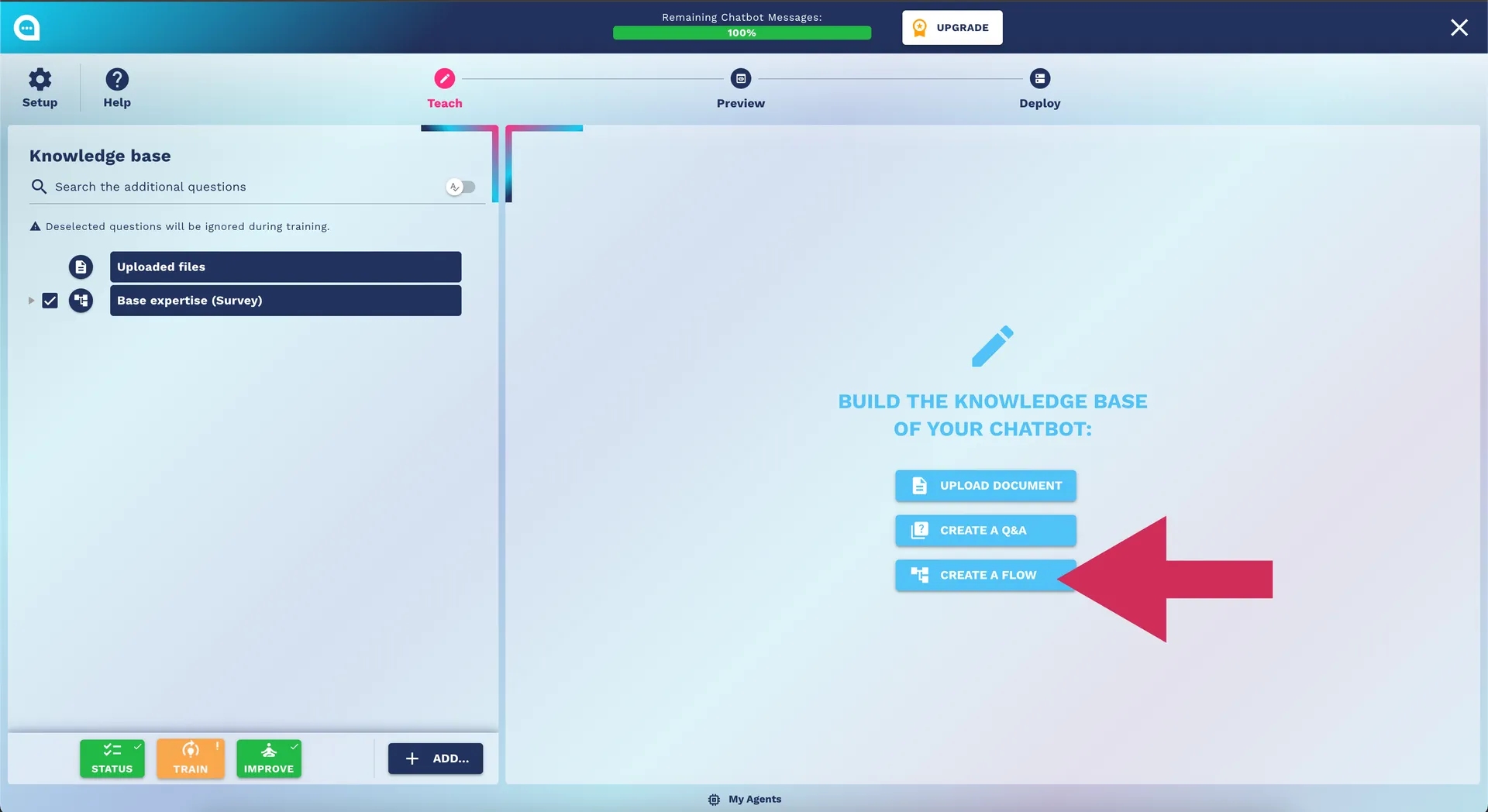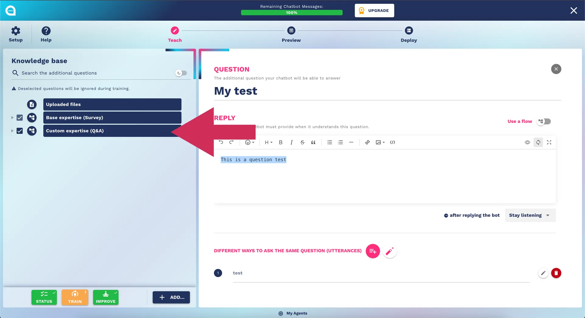 Unlock your chatbot's potential with our guide on the Teaching Step, including surveys, custom Q&A, and knowledge base management.