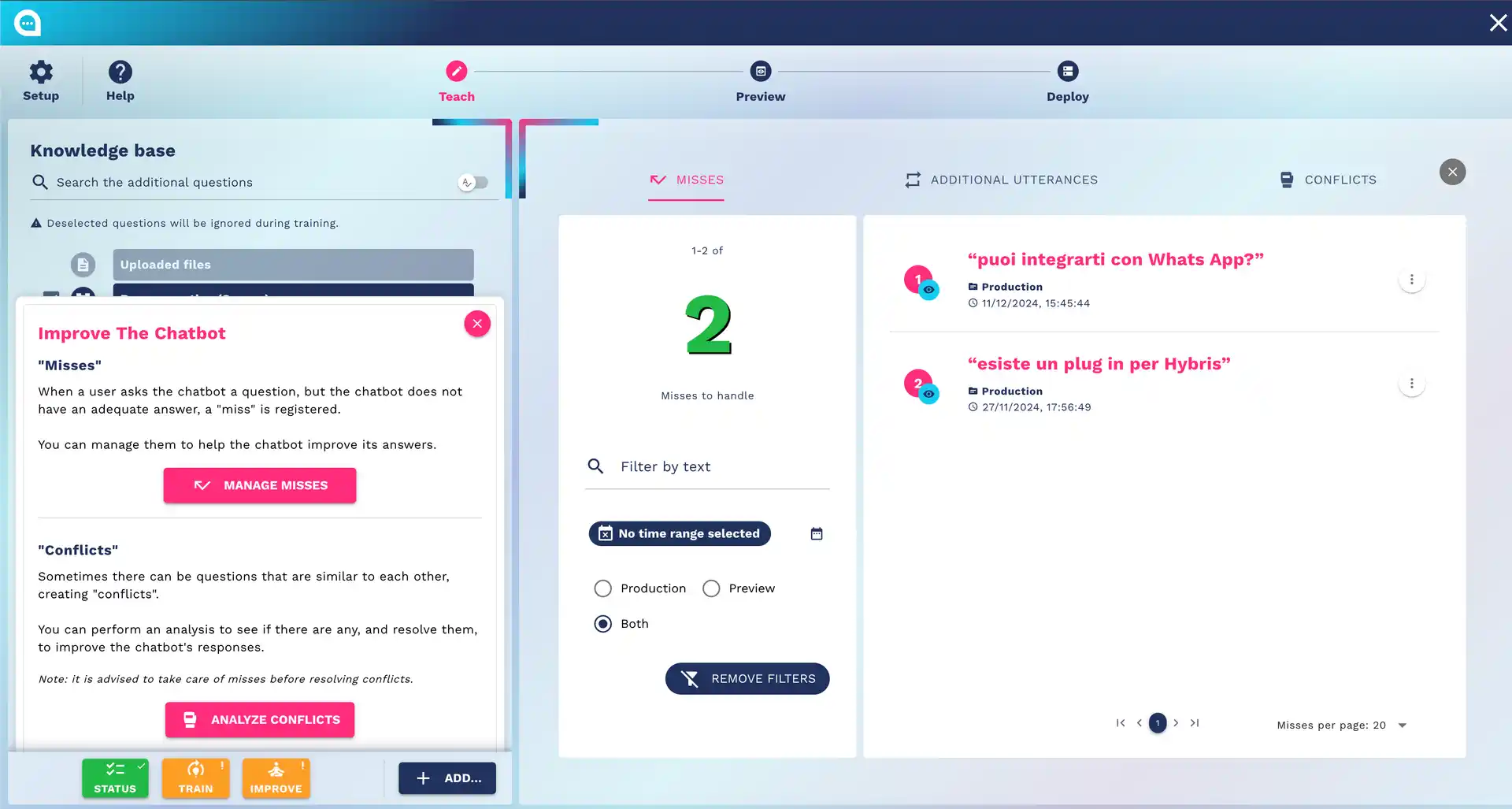 The Teaching Step is the heart of your chatbot. Here you define: